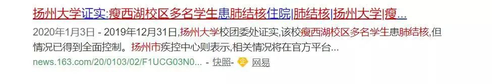 就在去年年底,扬州大学瘦西湖校区也证实多名学生患肺结核的消息。