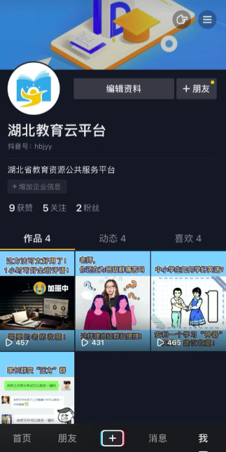 湖北教育云抖音官方账号上线